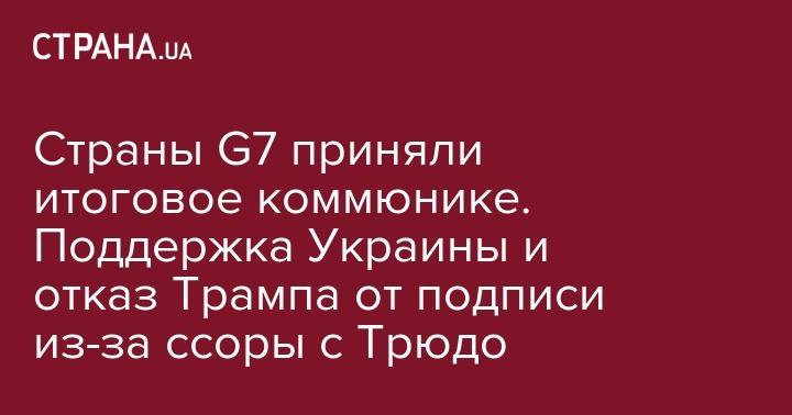 Страны G7 приняли итоговое коммюнике. Поддержка Украины и отказ Трампа от подписи из-за ссоры с Трюдо