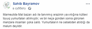 Крупную партию куриных яиц на мусорную свалку доставили с марнеульской птицефабрики, где посчитали, что товар является испорченным. Как оказалось, яйца не годились для употребления в пищу, потому что были оплодотворены. Прошло немного времени, природа взяла свое и в итоге свалку заполонили тысячи цыплят.