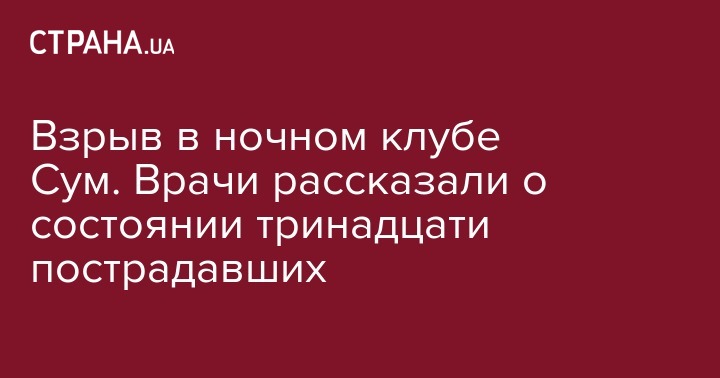 Взрыв в ночном клубе Сум. Врачи рассказали о состоянии тринадцати пострадавших