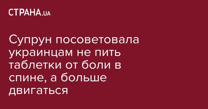 "Физическая активность может заменить много таблеток, однако никакие таблетки не смогут заменить физическую активность. Поэтому если вы и дальше продолжаете искать чудодейственные препараты от боли в спине, то лучше прекратите это делать. Таким образом вы сэкономите свое время и деньги", - подчеркнула Супрун.