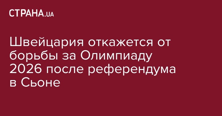 Швейцария планирует отказаться от проведения Зимних Игр в 2026 году по причине того, что заявка швейцарского города Сьона на проведение соревнований не получила поддержки жителей. Об этом сообщает DW.
