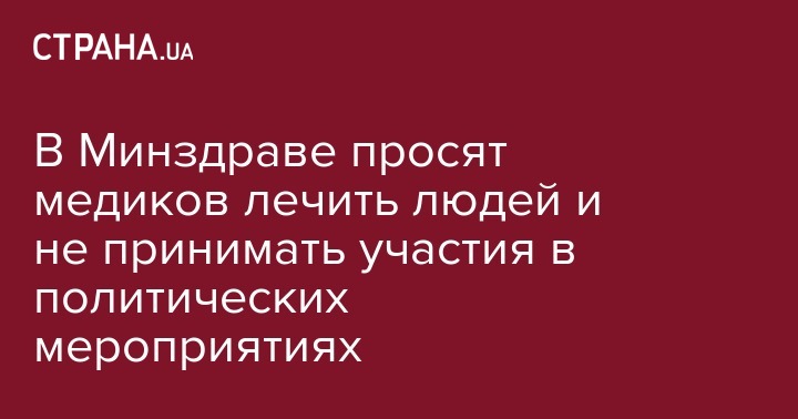 "К сотрудникам Минздрава Украины начали поступать многочисленные сообщения от врачей, которые призывают к участию в якобы профессиональных собраниях под срочными предлогами. МОЗ Украины призывает всех медиков воздержаться от участия в таких мероприятиях, так как это может привести к использованию врачей в политических целях. Просим всех коллег сосредоточиться на предоставлении качественной медицинской помощи пациентам по утвержденному графику работы и участия в профессиональных событиях", - говорится в сообщении.