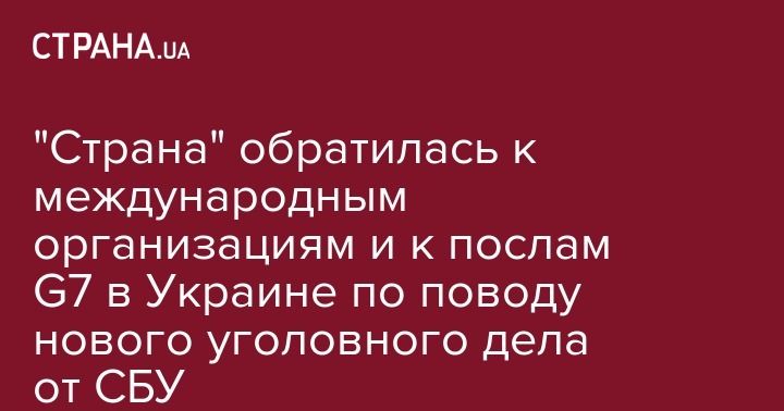 Редакция "Страны" обращается к международным организациям и к посольствам стран G7  Украине с призывом обратить внимание на действия СБУ и украинской власти в целом, направленные против свободы слова в Украине. По мере приближения кампании по выборам президента 2019 года такие действия приобретают системный характер. Если этот процесс не остановить, то к выборам 2019 года в Украине останутся только лояльные властям СМИ.