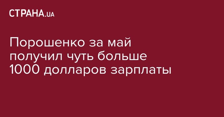 За май заработная плата президента Петра Порошенко  составила 28 тыс. гривен и после уплаты налогов перечислена на благотворительность.