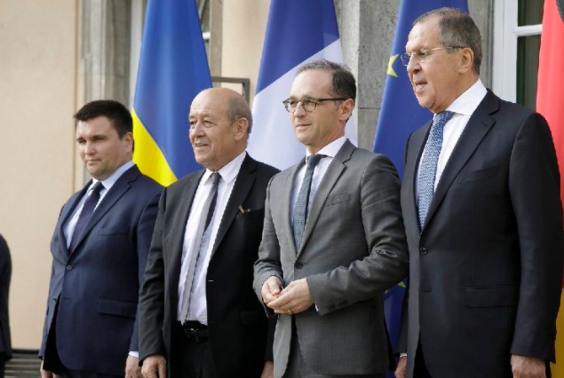 Уже появилось первое фото министра иностранных дел Павла Климкина, министра иностранных дел Германии Хайко Мааса, главы МИД Франции - Жан-Ив ле Дриана и министра иностранных дел России - Сергея Лаврова.
