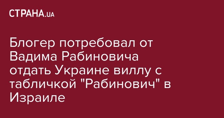 Блогер потребовал от Вадима Рабиновича отдать Украине виллу с табличкой "Рабинович" в Израиле