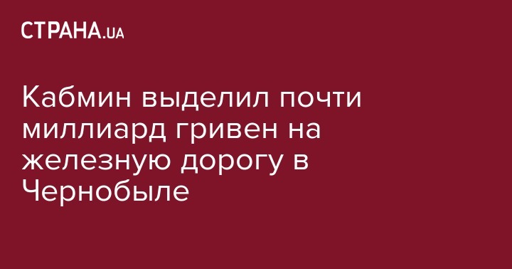 Кабинет министров утвердил проект реконструкции железнодорожного пути от станции Вильча до станции Янов в Чернобыльской зоне отчуждения (Киевская область) стоимостью 908,236 млн гривен (по состоянию на 1 марта). Такое решение было принято на заседании правительства, сообщают Украинские новости.