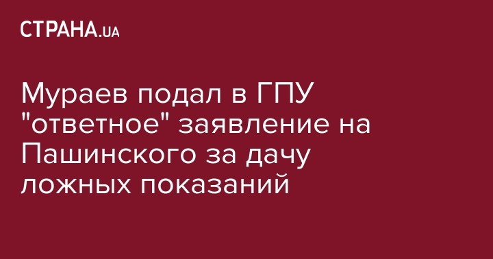 Внефракционный народный депутат Украины Евгений Мураев сообщил, что подал заявление в Генпрокуратуру о совершении нардепом из фракции "Народный фронт" Сергеем Пашинским преступления в виде заведомо неправдивого сообщения и ждет открытия производства.