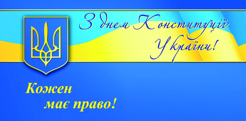 Поздравляю с Днем Конституции! Пусть наши права и свободы будут наивысшей ценностью, а сами украинцы помнят о своих обязанностях. Расцвета и развития нашей стране.