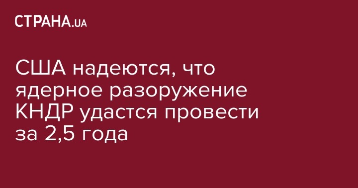 США надеются, что ядерное разоружение КНДР удастся провести за 2,5 года