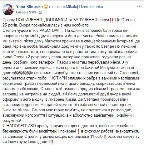 По данным, предоставленным Яной Сикорской на своей странице в социальной сети Facebook, ее друзья подвозили молодого человека по имени Степан до Киева, и он рассказал жуткую историю своей жизни.