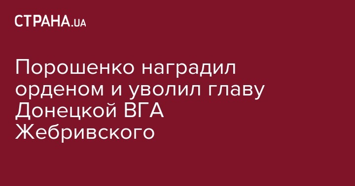 Одновременно с увольнением  Порошенко подписал указ о награждении главы Донецкой областной государственной администрации Павла Жебривского орденом князя Ярослава Мудрого.