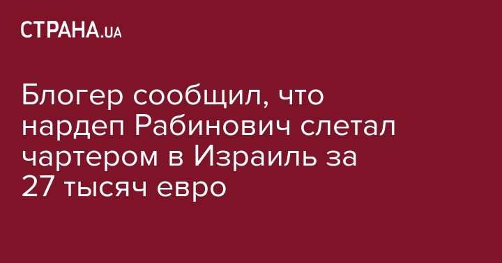 Блогер сообщил, что нардеп Рабинович слетал чартером в Израиль за 27 тысяч евро