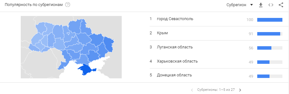 При этом, судя по статистике из регионов, активнее всего о ЧМ-2018 гуглят в Крыму, затем следуют Луганская, Харьковская и Донецкая области.