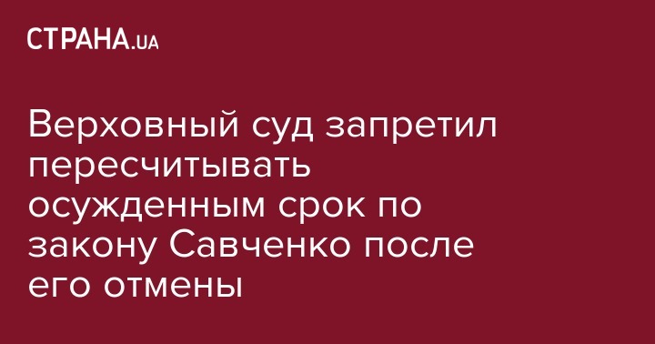Верховный суд запретил пересчитывать осужденным срок по закону Савченко после его отмены