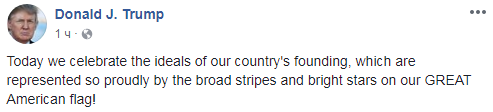 Сам Дональд Трамп опубликовал поздравления с национальным праздником - Днем флага, который сегодня отмечается в США.