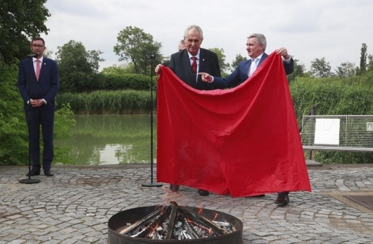 Президент Чехии Милош Земан на организованном брифинге в Пражском Граде сжег красные трусы, которые известная своими перформансами на политические темы чешская арт-группа Ztohoven вывесила над резиденцией главы государства в 2015 году, заменив президентский штандарт.
