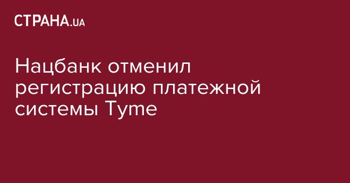 Нацбанк отменил регистрацию платежной системы Tyme