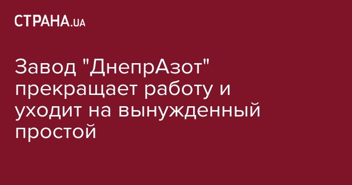 Завод "ДнепрАзот" приостанавливает работу на неопределенный срок и уходит на вынужденный простой. Об этом сообщил председатель правления "ДнепрАзота" Сергей Сидоров в Facebook.
