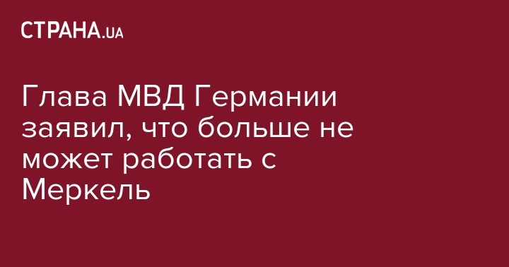 Глава МВД Германии и председатель Христианско-социального союза (ХСС) Хорст Зеехофер заявил, что больше не может работать с канцлером ФРГ Ангелой Меркель.