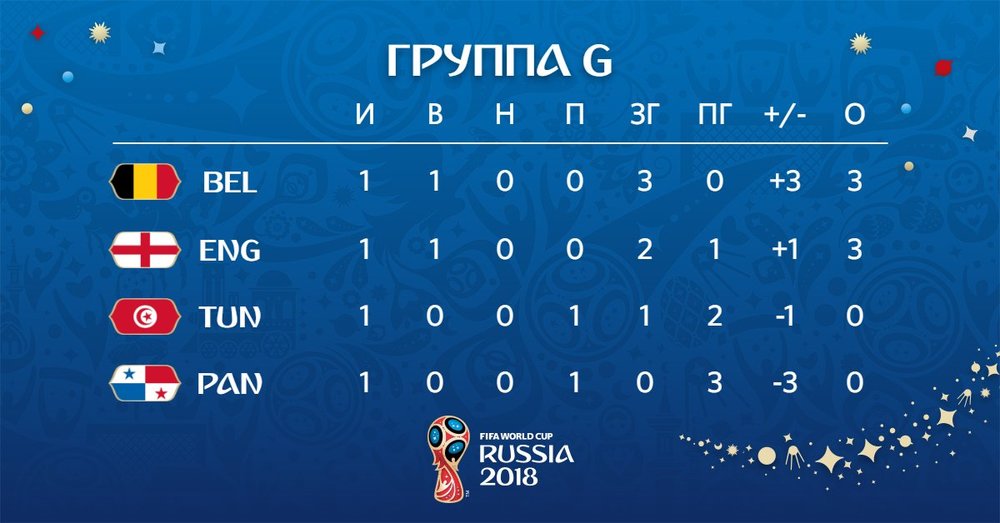 23.12 Положение команд в весьма непростой группе G, где лидерами стали футболисты из Бельгии, а сборная Англии вышла на второе место.