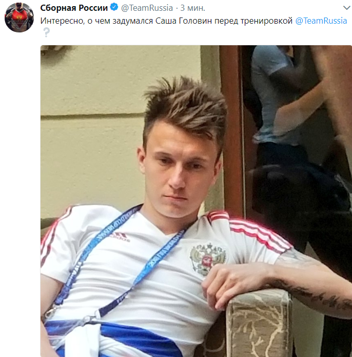 11:09  Полузащитник сбороной РФ Александр Головин перед тренировкой. Выглядит озабоченным. Завтра у российских футболистов важный день - игра против Египта, который в субботу хоть и проиграл Уругваю, но все же остается серьезной командой.