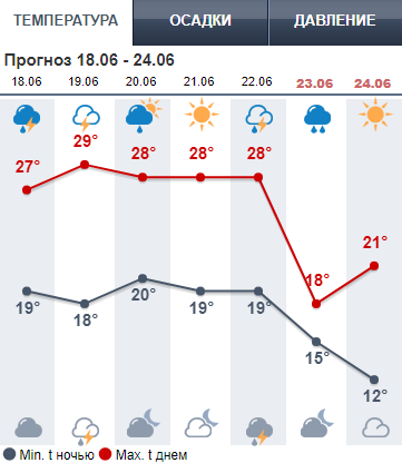 17 июня, воскресенье +27, переменная облачность, небольшой дождь.