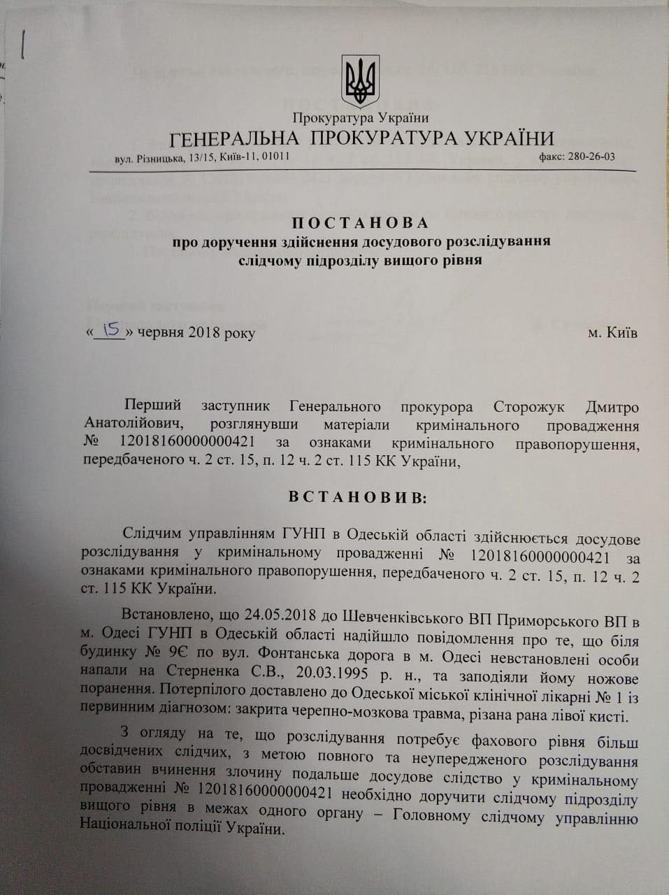Дело Сергея Стерненко забрали у одесской полиции и передали в Киев. Документ