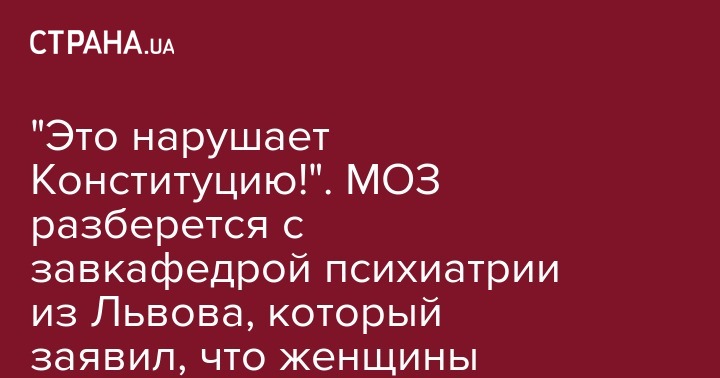 Минздрав рекомендовал Львовском медуниверситету рассмотреть пребывания в должности автора сомнительной с научной точки зрения статьи о психологических различиях между мужчинами и женщинами. Официальное письмо уже направлено ректору.