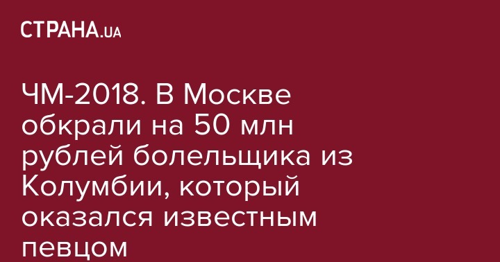 ЧМ-2018. В Москве обкрали на 50 млн рублей болельщика из Колумбии, который оказался известным певцом