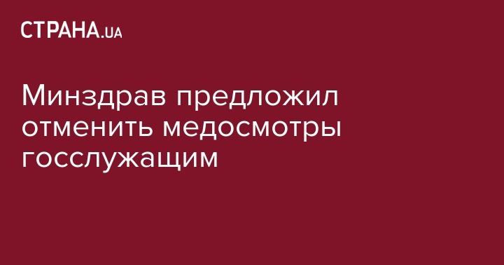 В Министерстве здравоохранения Украины после отмененных регулярных медосмотров украинцев предлагают отменить ежегодные медосмотры и государственных служащих. Об этом написала и.о. министра здравоохранения Ульяна Супрун на своей странице в Facebook.