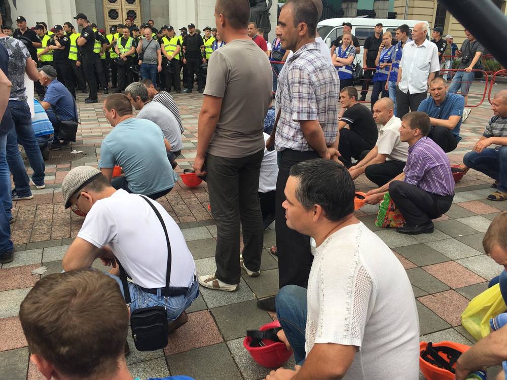 14:27  Некторые шахтеры остались под Радой и начали стучать касками, скандируя "Зарплату!".