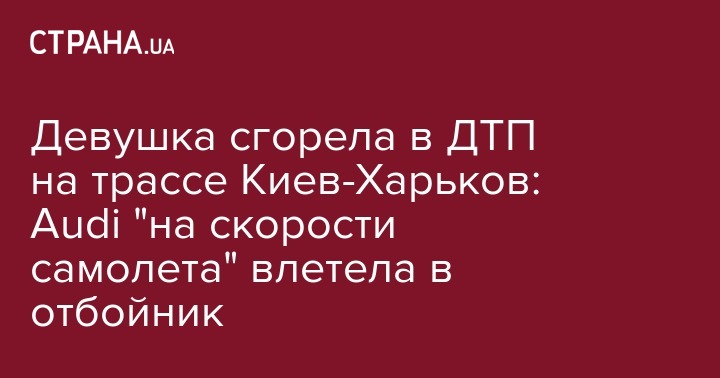 В понедельник, 19 июня на 180-м километре трассы Киев-Харьков "летевшая" на большой скорости легковая машина Audi врезалась в отбойник и загорелась.