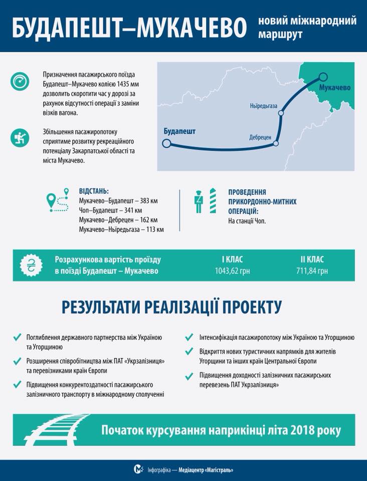 Напомним, в мае Кравцов отмечал, что ПАО "Укрзализныця" совместно с венгерскими государственными железными дорогами MÁV-START планирует запустить прямой поезд по маршруту Мукачево - Будапешт.