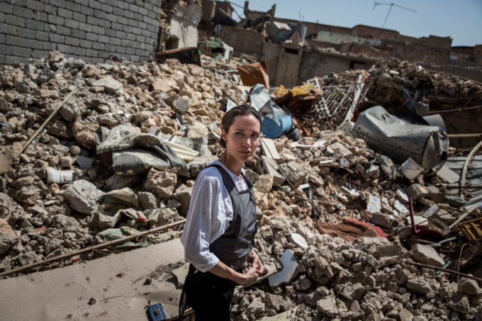 Анджелина Джоли в сером бронежилете посетила разбомбленный Ирак