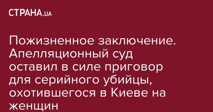 Пожизненное заключение. Апелляционный суд оставил в силе приговор для серийного убийцы, охотившегося в Киеве на женщин