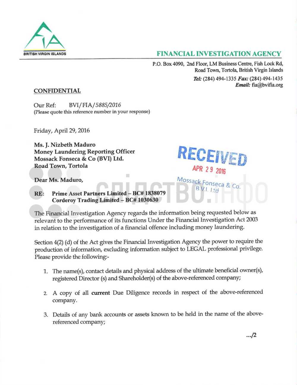 Отмечается, что сотрудники Mossack Fonseca неоднократно обращались к ним с запросом о более подробной информации относительно данного  украинского фонда и просили паспортные данные его директора, которым является отец президента Алексей Порошенко.