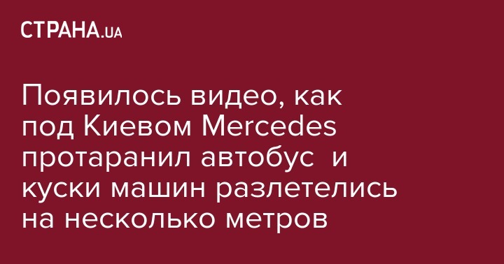 Появилось видео, как под Киевом Mercedes протаранил автобус и куски машин разлетелись на несколько метров