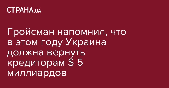 "Я хочу также сказать, что с 2005 по 2013 годы правительства Украины позаимствовали 50 млрд долларов. Из них в этом году надо отдать 5 млрд долларов, а в следующие годы 35 млрд долларов. Нам нужно заимствовать ресурсы, перекредитоваться. Моя цель - рассчитаться со всеми долгами", - сказал Гройсман.