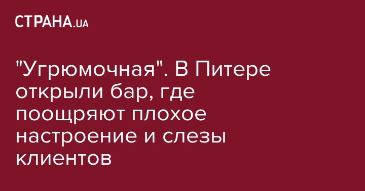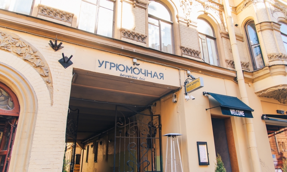 Камерный бар для грустных размещается на улице Рубинштейна, а его фасад украшает вывеска с надписью "Угрюмочная". Владельцы заведения претендуют на то, что оно стало первым в мире, где поощряется плохое настроение, печаль и слезы.