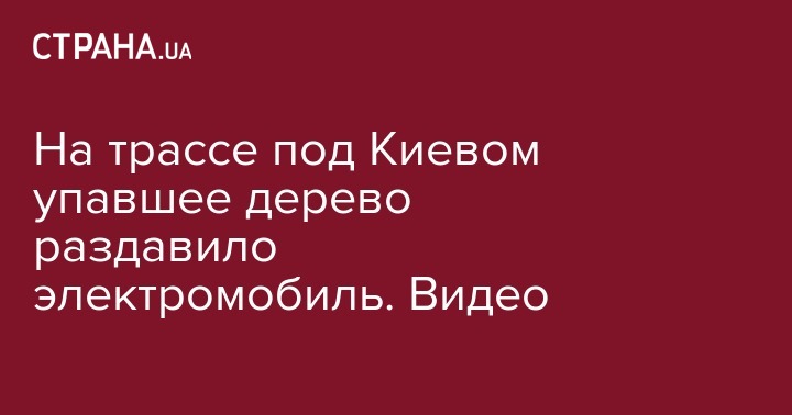 На трассе под Киевом упавшее дерево раздавило электромобиль. Видео