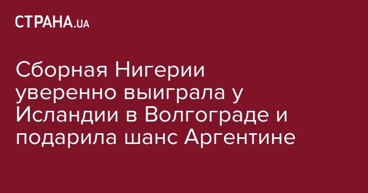 В пятницу, 22 июня на стадионе в Волгограде сборная Нигерии выиграла у Исландии и вышла на второе место группы "D" ЧМ-2018. Матч завершился со счетом 2:0.