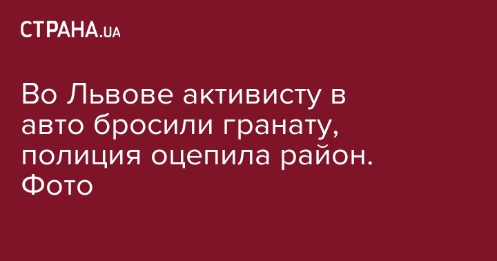 Во Львове неизвестные разбили авто и подбросили гранату местному активисту. Об этом в Facebook сообщил координатор общественной организации "Варта 1", депутат Львовского горсовета Игорь Зинкевич.
