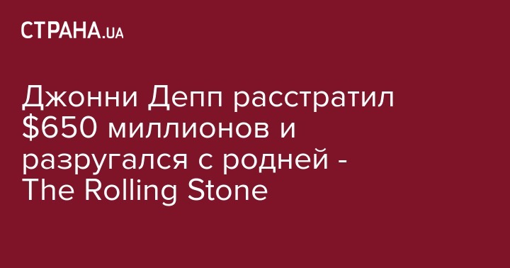 Голливудская звезда Джонни Депп расстратил свое многомиллионное состояние и рассорился с семьей. Об этом идет речь в статье журнала Rolling Stone.