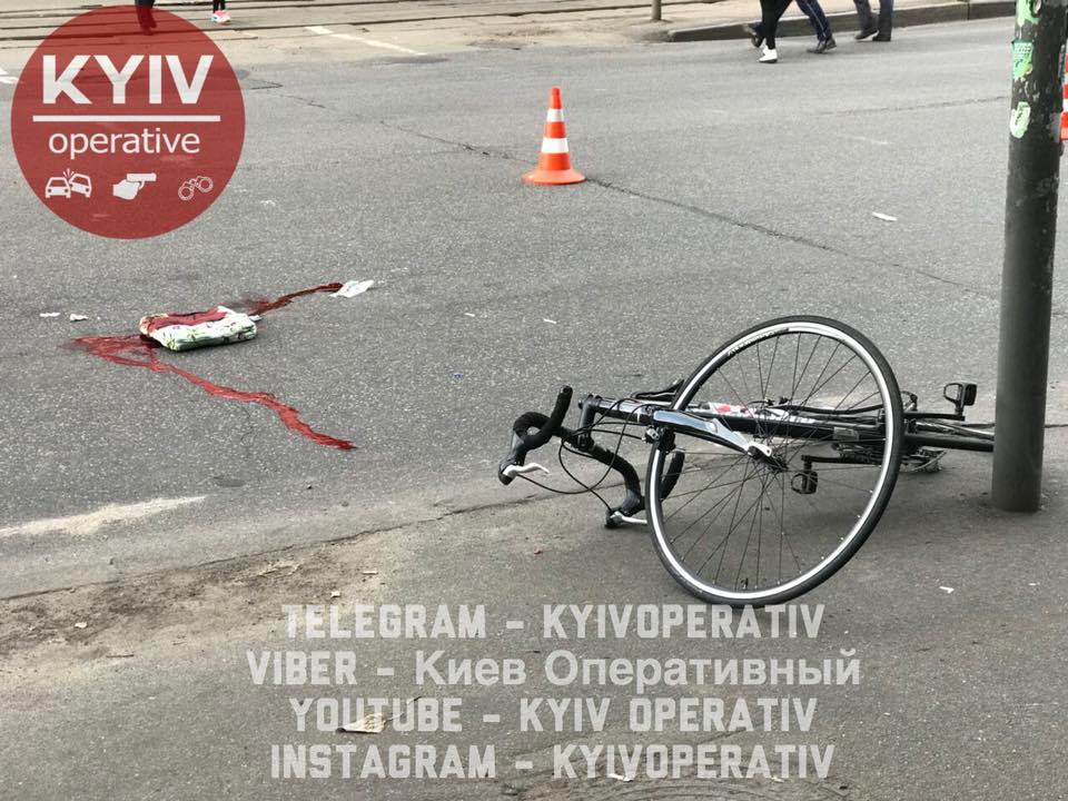 По информации очевидцев, мужчина на велосипеде двигался в сторону Подола и на перекрестке с улицей Терехина его подрезал неизвестный автомобиль.