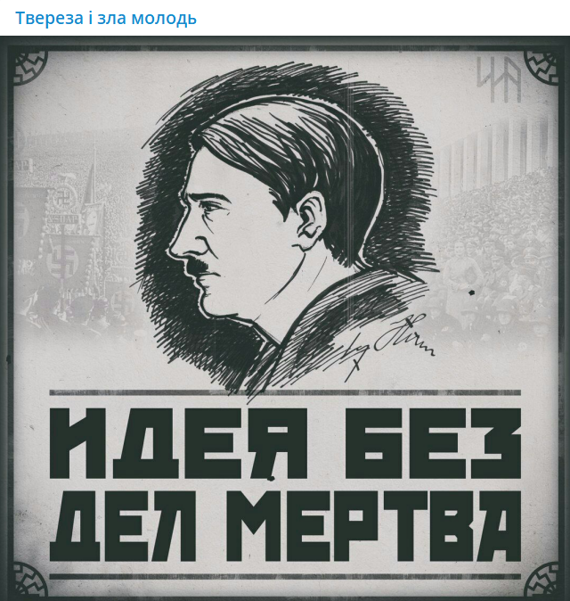 При этом и обложка самого Telegram-канала – с гитлеровским солдатом в характерной каске – выполнена также на русском языке.