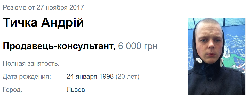 На порталах по поиску работы удалось выявить резюме человека с таким именем, который подходит под описание задержанного.