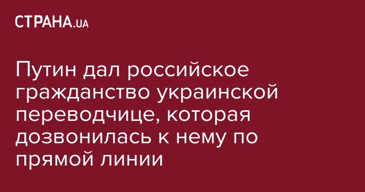 Президент России Владимир Путин выдал российское гражданство украинской переводчице Ирине Баркат, которая дозвонилась ему во время "Прямой линии". Уроженка Украины пострадала при обстреле в сирийском Алеппо.