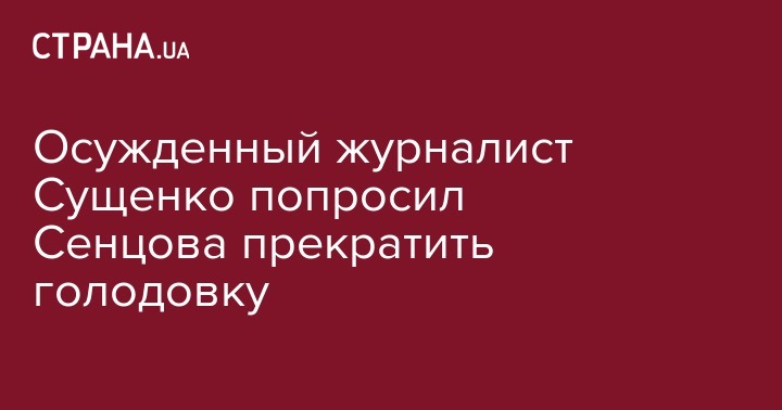 Украинский журналист, политзаключенный Роман Сущенко, осужденный в России за шпионаж, обратился к другому пленнику Кремля, украинскому режиссеру Олегу Сенцову с просьбой прекратить голодовку.