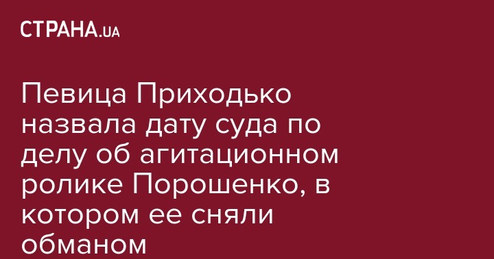 Украинская певица Анастасия Приходько назвала дату судебного заседания по делу об использовании отснятого материала с ее участием в агитационном ролике президента Петра Порошенко. Об этом певица написала на своей странице в Facebook.